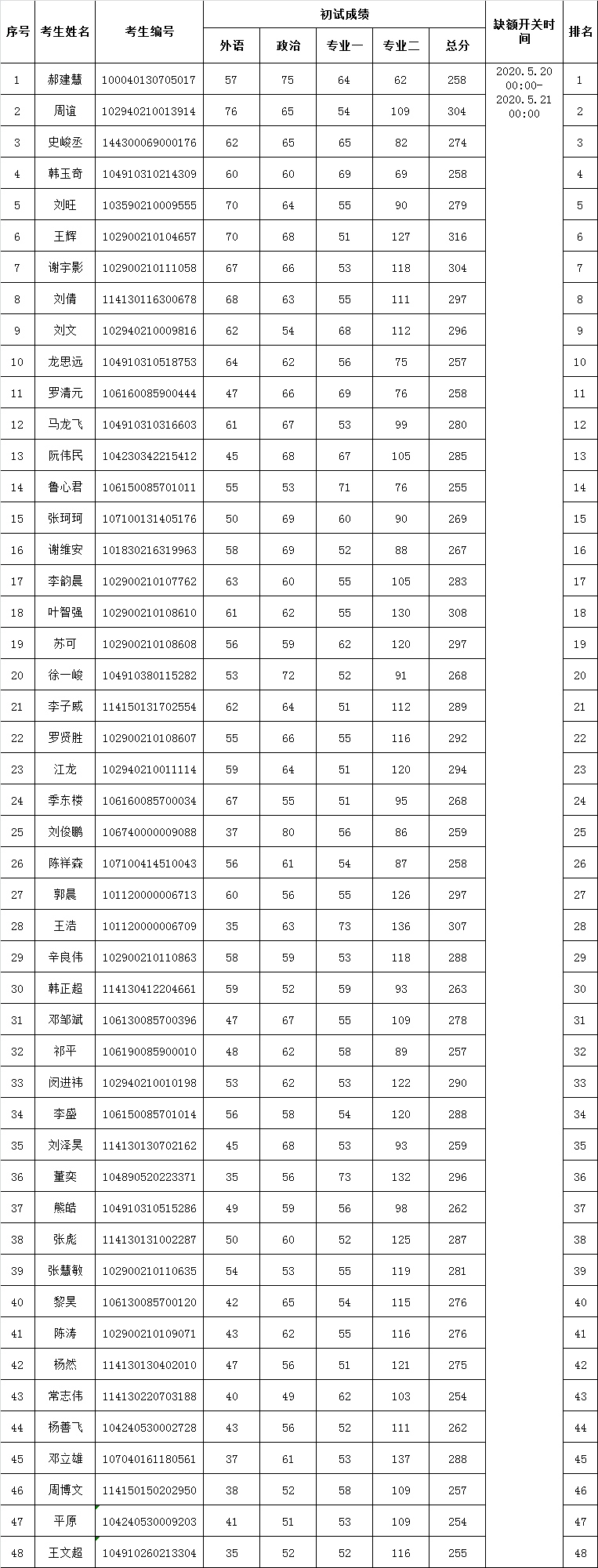 复试时间:2020.05.24-2020.05.26