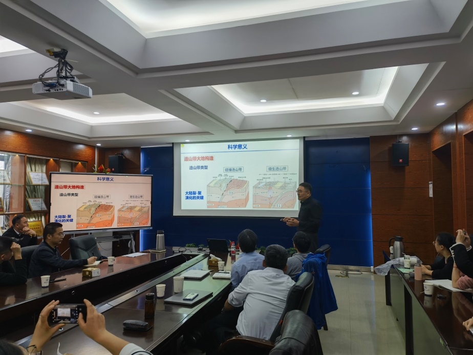 学术报告会上,徐涛研究员作了题为《金属矿地球物理探测:以辽东金矿为例》的报告,分享了不同类型金属矿的地球物理特征和主要探测目标,介绍了其团队在胶辽地区金成矿差异与地壳结构、基于节点式地震仪的主动源和被动源联合探测等方面的研究成果。杨英杰教授作了题为《CD-LITHO3D:基于面波与远震体波联合反演构建的川滇地区壳幔速度结构模型》的报告,介绍了联合反演的核心思想,剖析了不同川滇地壳速度模型的特征,探讨了低速异常区的空间分布及其可能的起源。苗来成研究员作了题为《中亚造山带东段大地构造组成与演化》的报告,系统总结了中亚造山带构造演化的研究历史与现状,并对尚有争议的大陆增生模式和过程给出了自己的观点和证据。陈林研究员作了题为《地幔非均一性与克拉通稳定性》的报告,深入剖析了克拉通的形成模式、克拉通地幔非均一性的证据及其对克拉通稳定性的影响。张永谦副研究员作了题为《华南大陆岩石圈结构:宽频带地震研究进展》的报告,阐述了岩石圈演化与成矿的关系、宽频带地震学的探测优势与研究进展。毛亚晶副研究员作了题为《新疆岩浆岩型铜镍钴矿床的成矿作用特色与勘查进展》的报告,对新疆岩浆型铜镍钴矿的成矿特色、勘查进展与瓶颈问题进行了总结。学术报告内容涉及到地震学、矿床学、构造地质学、地球动力学等多个学科领域,研究成果聚焦前沿、思想开放包容,引起了众多师生的深入讨论。