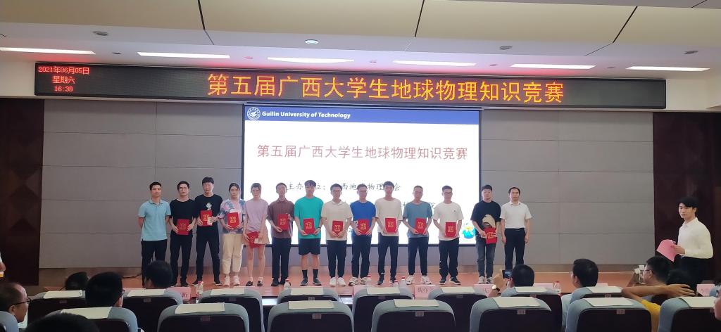 6月5日下午,2021年第五届广西大学生地球物理知识竞赛在我院01501会议室成功举办。来自广西地区勘查技术与工程专业的10支参赛队伍、共计40名参赛选手展开了激烈角逐。由我院熊彬院长以及勘技教研室的张智、王洪华、欧东新等10位教师组成了评审队伍,为比赛进行了现场点评。最终,由梁明桂、高春艳、宾林、邓欢组成的3号代表队获得了竞赛一等奖。赛后,评委老师为获奖选手颁发了证书和奖品。