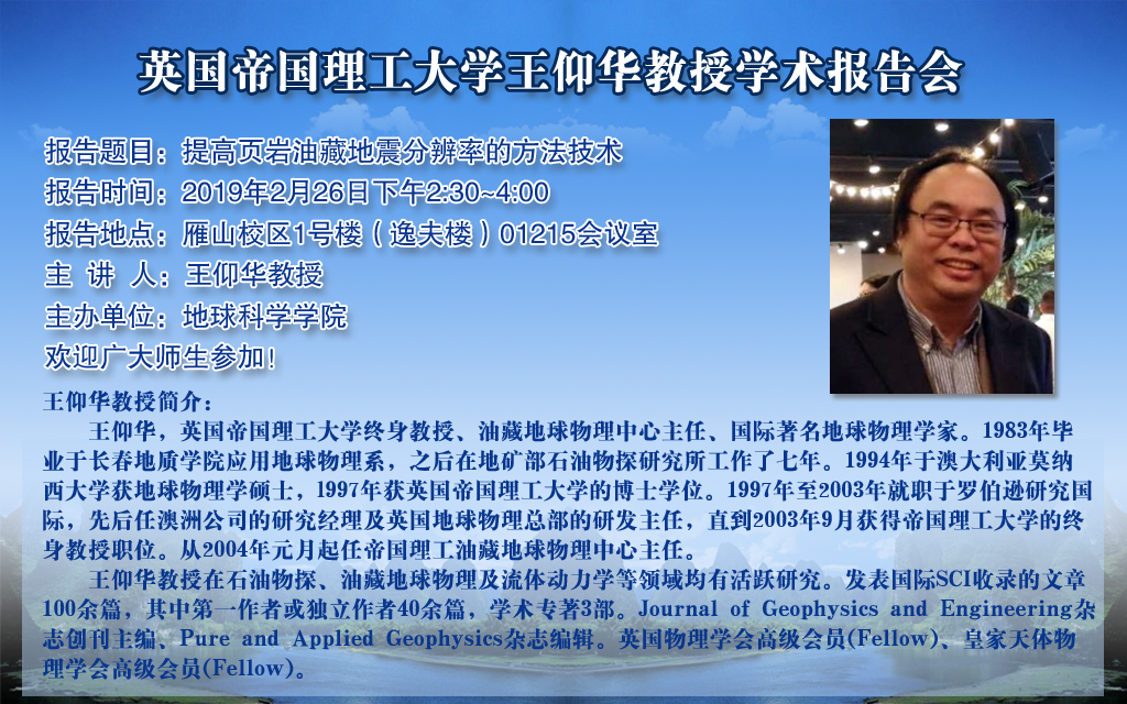 王仰华,英国帝国理工大学终身教授、油藏地球物理中心主任、国际著名地球物理学家。