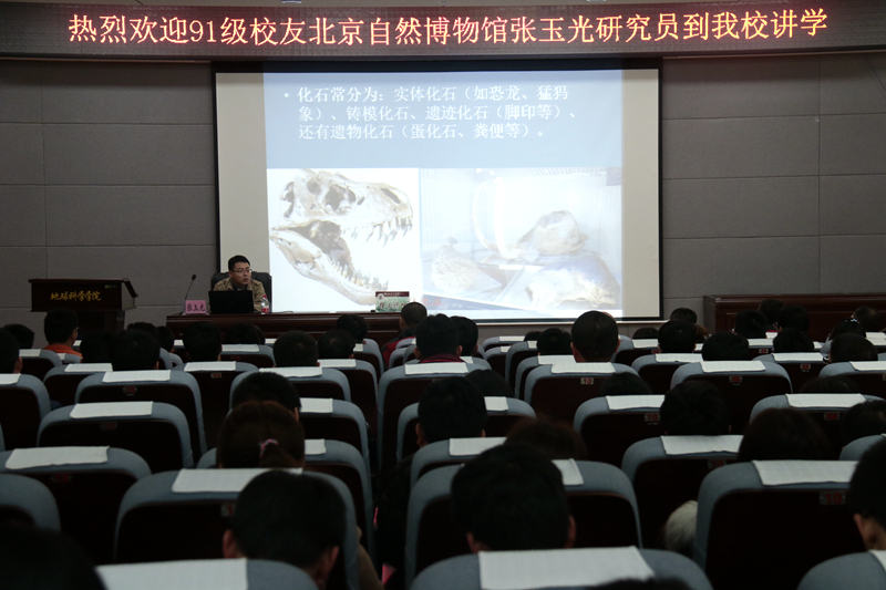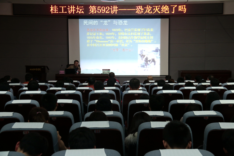3月14日下午,学校91级校友,北京自然博物馆张玉光研究员应邀于雁山校区逸夫楼01501学术报告厅进行科普学术讲座,讲座围绕主题“恐龙灭绝了吗?”展开。bv伟德国际1946院长熊彬、党委副书记耿俊茂、院长助理陈宏毅和相关专业师生到场聆听讲座,熊彬院长主持本场讲座。