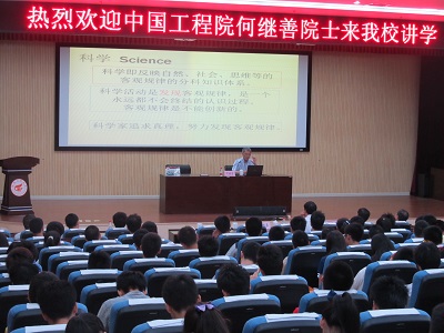 报告会上,何院士并没有直接与大家分享自己在研究上的心得,他耐心的从什么是艺术,什么事科学开始,一步一步的引导同学们进入科学的世界,在何院士的精美PPT切换的同时,他给我们分析了想象对一个从事科研的人有多么的重要,他告诉我们,一个真正想要创造的人,必将是一个很有想象力的人。他为大家举了很多获得诺贝尔奖的科学家作为例子,充分的展现了想象力对一个人的重要性,想象力是可以改变一个时代,甚至能让人类跨入新的时代,他还告诉我们,一个人除了工作和学习,应该还要做一些自己喜欢的事情。何院士很喜欢书法,期间他向同学们展示了很多他自己的作品,一幅幅精美的书法赢得了同学们阵阵掌声。最后,何教授教育大家,要有一颗爱国的心,要努力的学习,创新发展,争取把我们的国家建设的更强大。