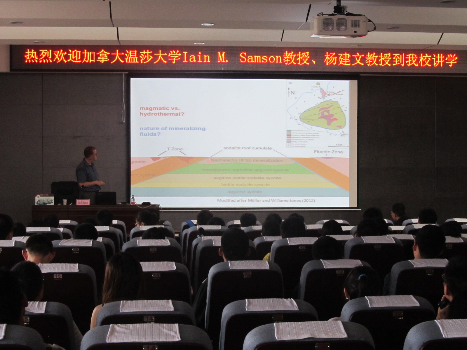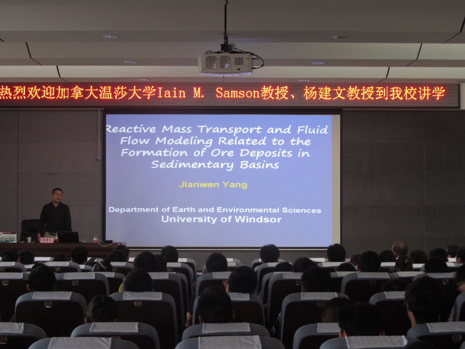 2014年5月20日下午三点,加拿大温莎大学 Iain M. Samson、杨建文教授,在逸夫教学楼01501报告厅给同学们带来了题为The rare element deposit at Thor Lake, Northwest Territories, Canada;Reactive Mass Transport and Fluid Flow Modeling Related to the Formation of Ore deposits in Sedienemtary Basins的报告。