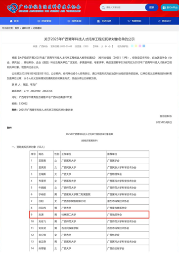 我院刘潇副教授入选广西青年科技人才托举工程资助类托举对象