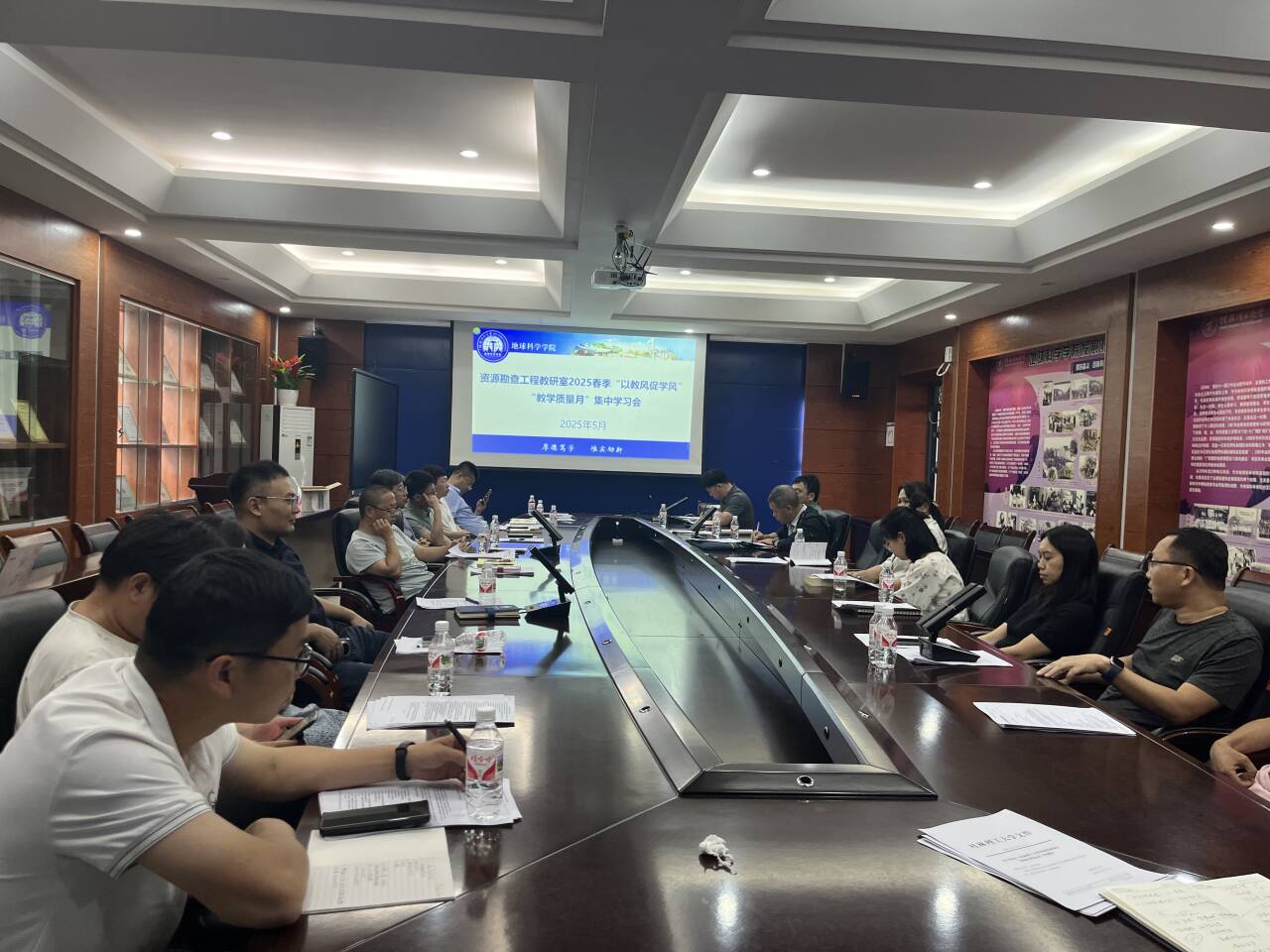 为落实立德树人根本任务,营造良好的教学秩序和浓厚的学习氛围,树立严谨的校风、教风和学风,进一步提升教育教学质量,资源勘查工程教研室于2025 年5 月14日在01215开展“以教风促学风”为主题的“教学质量月”活动,此次会议由教研室主任余勇老师主持。