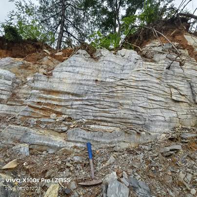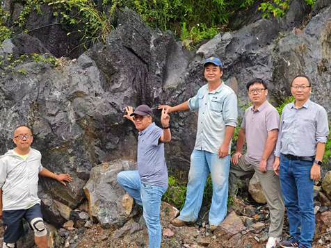 近年来,灌阳—平乐高速公路的开挖施工,在实习区新增了多个山体剖面,揭露出之前地表难以观察的丰富的地层及构造现象。2025年8月19-20日资勘教研室邀请广西区域地质调查研究院陆刚教授级高级工程师,与余勇、蒙有言、李学森、白令安四位老师组成考察组,共赴灌阳实习基地进行野外调查与讨论。