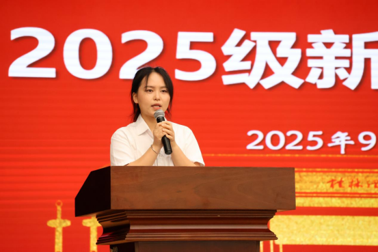 在校生代表、2023级博士研究生李晓楠同学发言。她结合自己的学习经历,分享了如何在大学规划自己的学业与未来,鼓励新生们要把个人的理想追求融入党和国家事业之中,用青春和智慧书写无愧于时代、无愧于母校的精彩篇章。