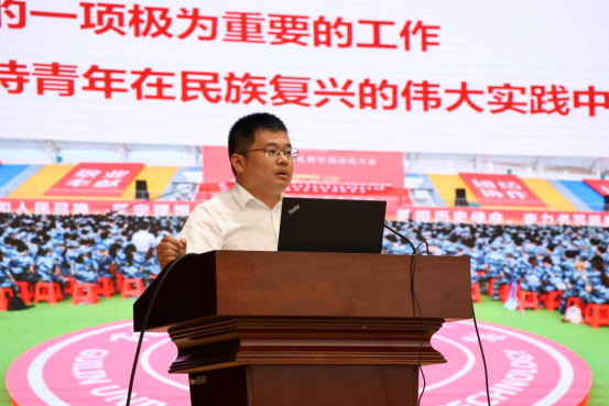 最后,学院党委书记陈小波以“坚定理想信念,努力成为堪当民族复兴重任的时代新人”为题为新生们带来了开学第一堂党课。陈书记围绕习近平总书记对青年的青春寄语,从牢记领袖嘱托坚定理想信念、用党的光辉历史照亮成长成才之路、努力成为堪当民族复兴重任的时代新人三个方面,进行了深入浅出的讲解,引导新生们抓住青春年华,下一番苦功夫,练好“内功”,为人生蓄满青春能量。