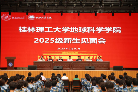 典礼在庄严的国歌声中拉开序幕。会上,学院党委副书记、常务副院长刘希军教授代表学院全体师生向2025级新生的到来表示热烈的欢迎和衷心的祝贺。刘院长对学院的学科建设历史、专业设置、师资力量等方面进行了说明。针对新生的学习生活,刘院长提出了三点希望,一是以求真之心,探索地球奥妙;二是以时代之眼,担当国家使命;三是以攻坚之志,传承地质荣光。勉励新生们不惧挑战,勇于探索,以“功成不必在我”的胸怀和“功成必定有我”的担当,锻造钢铁意志,勇攀地球科学高峰,为推动国家地学高质量发展贡献桂工学子的智慧力量。