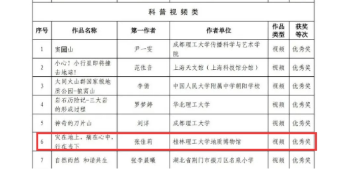 经过初核、专家评议等流程,我馆组织参加的科普作品《中国第一颗南极月球陨石漂流记》和《灾在地上,痛在心中,行在当下》分别荣获科普视频二等奖和优秀奖。