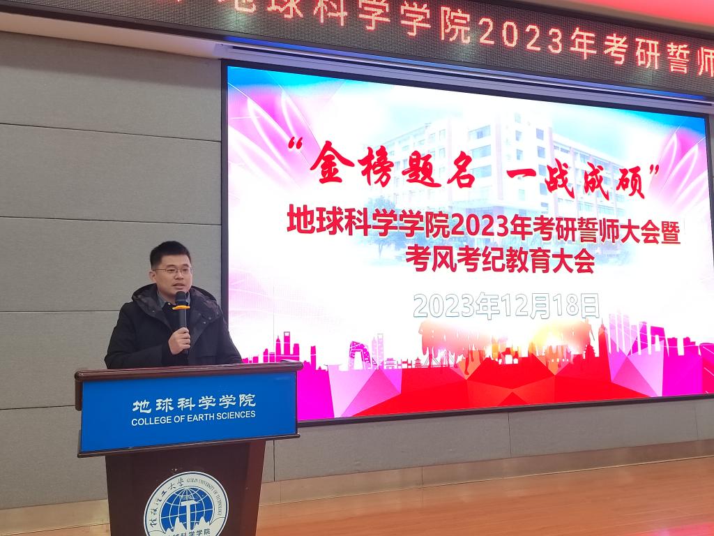 随后,党委书记陈小波为2024届考研学子代表发放考研“加油包”,传递学院祝福。他殷切寄语考研学子,既要调适心态、轻装上阵,又要沉着冷静、认真做答,更要严守纪律、守住底线。希望大家要在诚信考试中,书写人生的精彩答卷。
