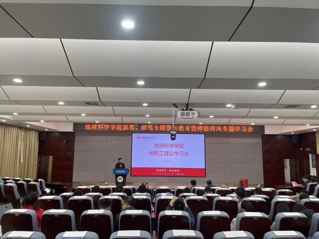 12月15日下午,学院在逸夫楼501报告厅开展酒驾、醉驾专题警示教育暨师德师风专题学习会。会议由学院党委书记陈小波主持,全体教职工参加。