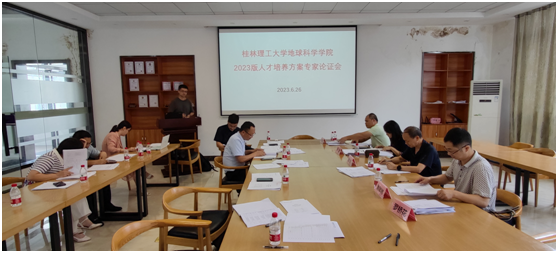 bv伟德国际1946地球化学专业以本科教育教学审核评估为契机,紧密围绕人才培养目标,严格对照毕业要求指标点,重构课程体系,全面修改人才培养方案。2023年6月26日上午,在屏风校区大学科技园内协同创新中心会议室举行2023版本科人才培养方案专家论证会,本次论证会邀请到桂林市勘察设计研究院原总工黎大光、广西师范大学环境与资源学院陈展图副教授、广西壮族自治区区域地质调查研究院黄祥林高级工程师、桂林兆帕机械科技有限公司陈丽总监和广西310核地质大队罗桥花总工程师,会议由白令安副院长主持。