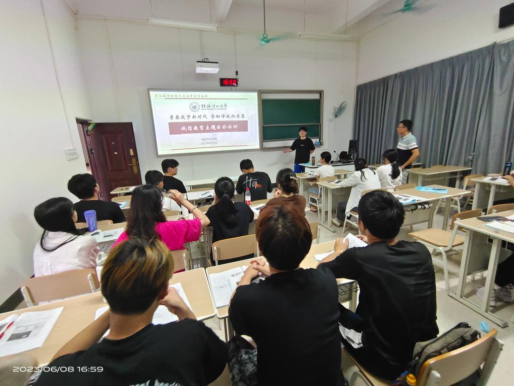 为强化学生的诚信意识,引导同学们将“诚信”内化成一种行为习惯,外化成一种自觉行动,5月31日至6月11日期间,地学院各班级积极组织召开了诚信教育主题班会。