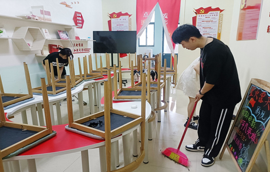 为深入贯彻习近平总书记关于爱国卫生运动的重要指示精神,更有针对性地落实新时代卫生健康工作方针,推进文明新风尚落到实处,形成文明健康人人践行的良好氛围,共享健康好生活,我院还组织党员志愿者积极开展“文明志愿我先行”爱国卫生月志愿服务活动。志愿者们起扫帚、拖把、抹布等工具,对学院大地之子社区红色驿站、研究生自习室、学生活动室等场所进行打扫。一是将桌椅摆放整齐并擦拭桌面,二是将卫生死角和地面清扫干净,三是清理杂物和垃圾。让自习室变得“净起来、亮起来、美起来、文明起来”,营造一个清新怡人、舒适整洁的学习环境和良好的学习氛围。