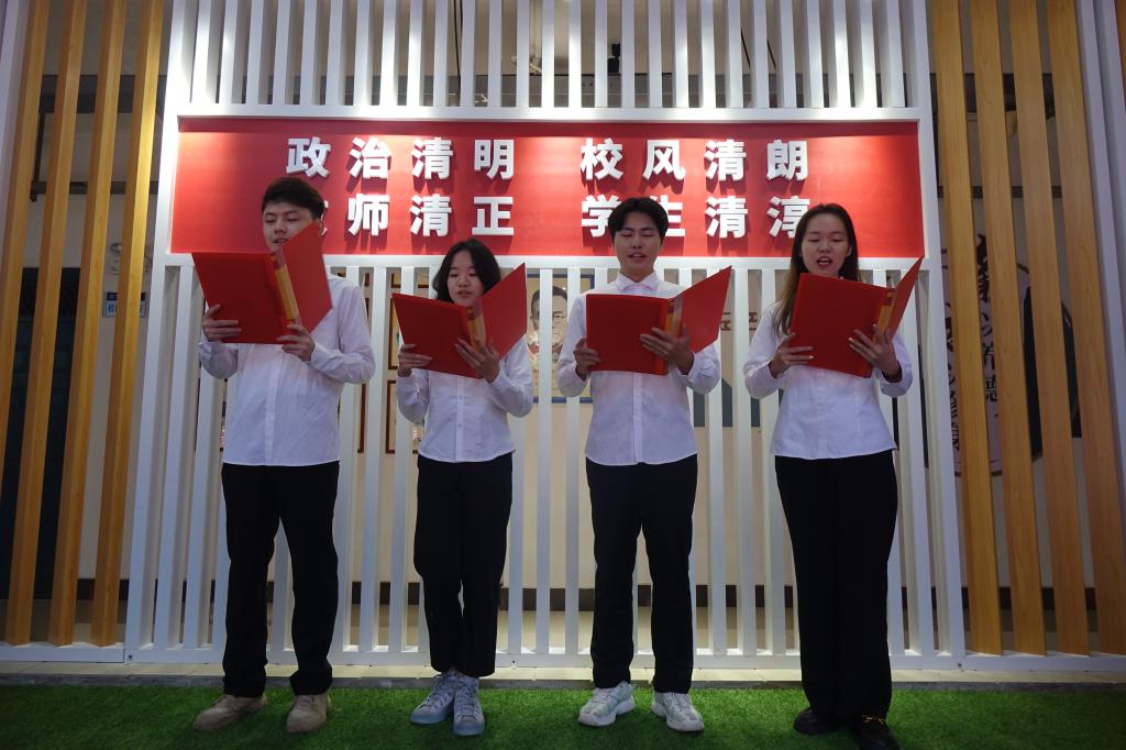 廉洁守初心,清风润党心。为了让崇尚廉洁的理念更加深入人心,培育良好的学风院风,学院组织学生党员代表现场朗诵《爱莲说》,用抑扬顿挫的语言生动诠释了对廉洁文化的深刻感悟,弘扬了新时代廉洁文化主旋律,展现了当代青年学生的朝气,也在同学们心中种下了“廉洁”的种子,让廉政教育在潜移默化中润物细无声。