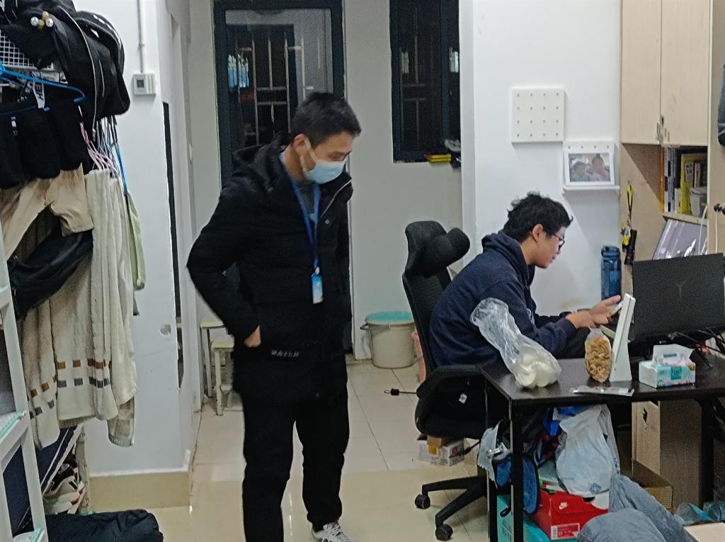 随着天气变冷,为体现我院对学生社区的关注,深化大家对安全用电方面的认识。12月4日晚,我院学生社区服务管理中心在王成瑞老师的指导下,开展查处宿舍违规电器的工作。任务下达后,我院社区服务管理中心迅速安排分配工作,充分发挥自身作用,以高昂的心态投入到检查工作中去,合力推动我院学生宿舍向着更安全方向井然有序地发展。