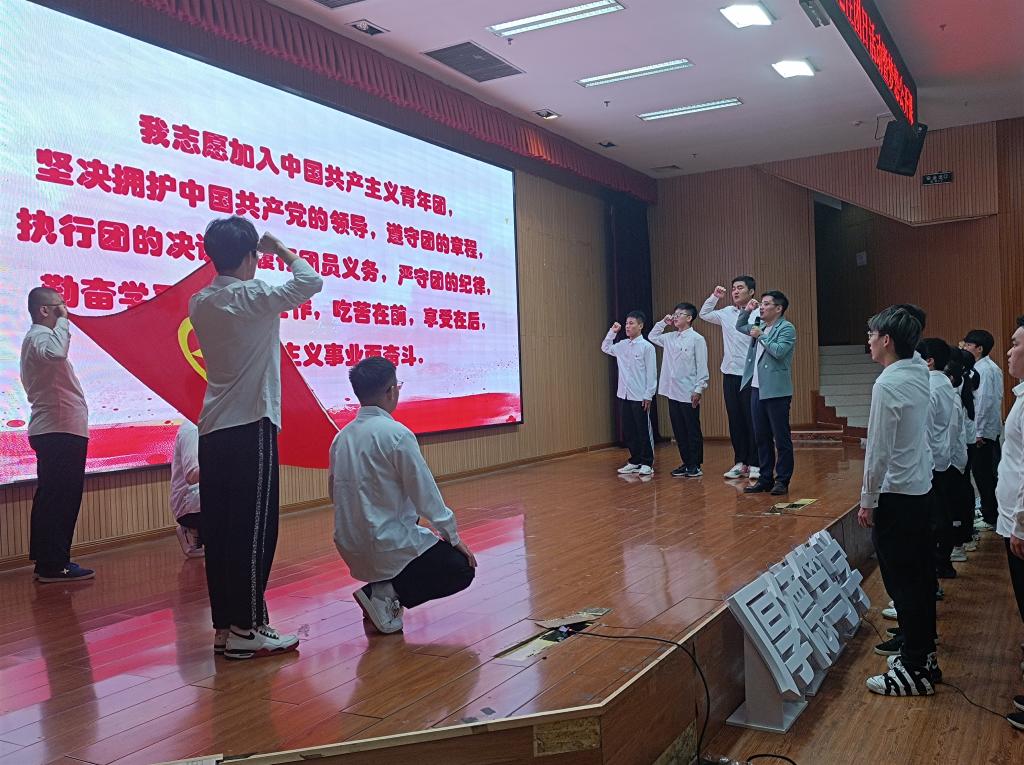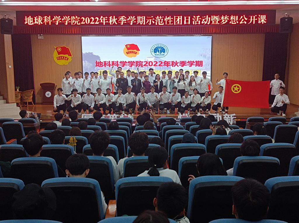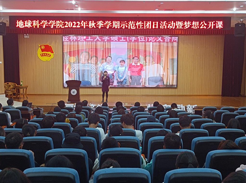会议伊始,主持人介绍出席本次示范性团日活动的各位嘉宾,并带领大家共同奏唱团歌。本次示范性团日活动共分为三个篇章,第一篇章:罗盘领航·青春向党。广西三一〇核地质大队副大队长、总工程师罗桥花用朴素的语言,道出了作为一名女地质队员的光荣与自豪,教育引导广大青年学子矢志报国,以献身地质事业为荣、以找矿立功为荣、以艰苦奋斗为荣,把个人的理想追求融入党和国家事业之中,吃苦奉献、砥砺图强。随后表演的地质人之歌,更是歌颂了地质工作者励精图治、不畏艰险的奉献精神和爱国情怀。第二篇章:放大知微·青春奋斗。首先由学生代表徐锐同学作社会实践专题分享,介绍在社会实践过程中弘扬践行黄大年精神,学思践悟黄大年先进事迹,鼓励在场学子要领悟“脚踏实地,坚守岗位,唯痴迷者成大业’的精神”,随后学院副院长吕玉增教授与大家分享了他参与“3·21”东航MU5735航空器飞行事故排查救援勘探工作的难忘经历,勉励在场学子学好知识、练好本领,在祖国和人民需要时,要敢于挺身而出迎难而上。第三篇章:铁锤筑梦·青春强国。由学院组织员吕思慧老师作《征程》主题团课分享,带领大家共同回顾学院缪秉魁教授在南极的几次科考经历,讲述了缪秉魁教授在南极科考期,不畏艰难险阻,积极投身到各项科研当中,将“爱国、求实、创新、拼搏”的南极精神和“艰苦创业、敬业奉献、团结协作、开拓创新”的桂工精神完美结合,用行动诠释着他的爱国情怀。活动最后一个环节由我院团委书记吴田波老师为新入团团员颁发团徽,并带领同学们现场重温入党誓词。至此,我院“学习二十大,永远跟党走,奋进新征程”示范性团日活动暨梦想公开课圆满结束。