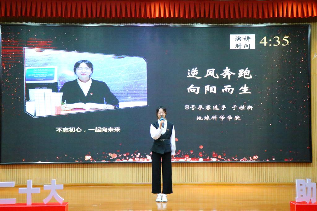 5月15日,伟德国际1946手机 2022年“青春献礼二十大 助学筑梦铸信念”资助主题演讲比赛在雁山校区图书馆报告厅举行。我院宝石2020-2班于桂新同学结合自身励志成长经历,以《逆风奔跑,向阳而生》为主题展开演讲,取得一等奖的好成绩。