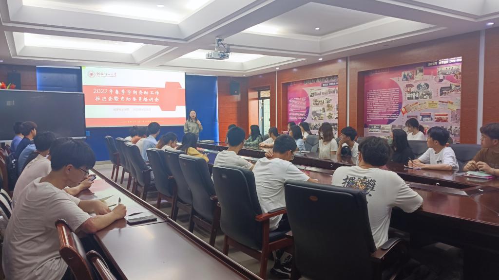 2022年4月28日,bv伟德国际19462022年春季学期资助工作推进会暨资助委员培训会在逸夫楼01215会议室顺利召开,学院资助专项工作辅导员夏雪莲主持会议,全体资助委员参加。