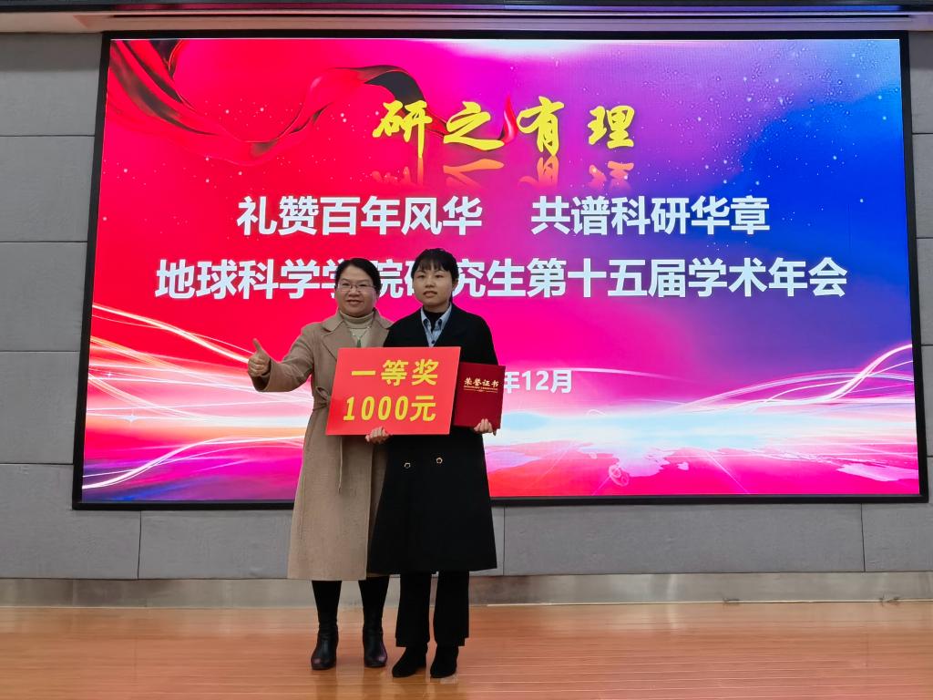 学校党委研工部副部长、研究生院副院长江玲为一等奖同学颁奖