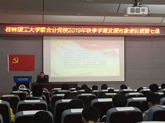 2019年10月27日,01501报告厅,我院党委书记曹文献老师为机械与控制工程学院、bv伟德国际1946、艺术学院、测绘地理信息学院、信息科学与工程学院联合分党校2019年秋季学期党员发展对象培训班作专题党课。党课由学院党校教务员谷正杰老师主持。