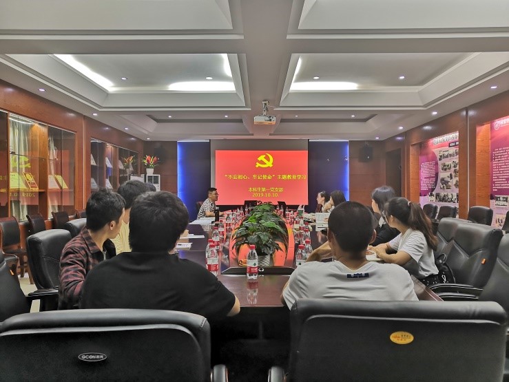 为了进一步贯彻落实党的十九大精神,2019年10月10日,本科生第一党支部在01215会议室召开“不忘初心、牢记使命”主题教育学习会议。