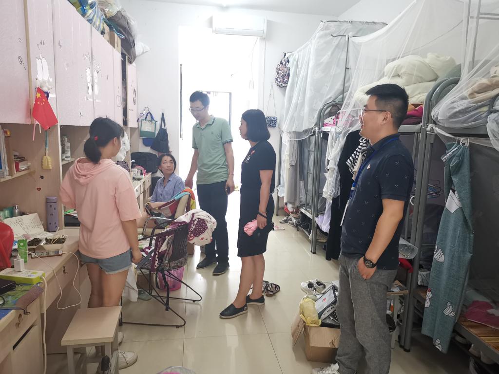 为了加强专业分流后的学生管理,和进一步做好放假前的安全工作,7月8日中午,学院党委副书记陶剑飞,各年级辅导员前往二号组团22栋和24栋巡视宿舍调整搬迁情况,并检查学生离校前宿舍情况,排除安全隐患。