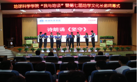 活动伊始,与会人员一同观看了第七届地学文化长廊系列活动集锦视频,回顾了地学文化长廊每个活动的精彩瞬间。“我与地谈”访谈栏目中,熊彬老师和余勇老师回顾了自己从事地质行业的初心、一路走来的学习、科研体会及感悟,两位老师深厚的专业理论知识、实践工作经验以及对地质行业的感情深深感染着在场的每一位。随后师生诗朗诵《坚守》,表达了他们对地质专业的热爱以及坚守。此次活动以学生代表发言以及为获奖学生颁奖完美落下帷幕。