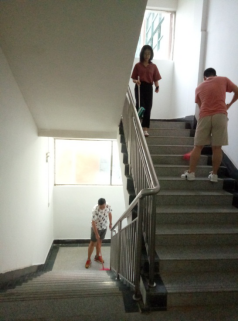 逸夫教学楼共有六层,所有党员同志分工合作,对每层楼的楼梯进行垃圾清理和打扫。整个活动持续了约一小时,尽管天气炎热,各位党员同志还是认真打扫每个角落,努力为大家营造干净的学习环境。同时,一些党员同志还呼吁大家今后自觉带走个人垃圾,做文明桂工人。清理垃圾后,党员同志们纷纷合影留念,本次活动也圆满结束。