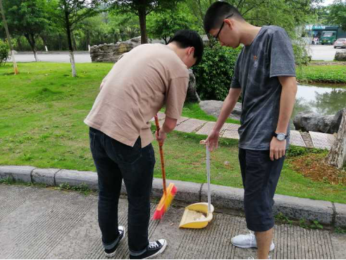 2019年5月21日下午,本科生第一党支部组织了一次毕业生党员清洁校园活动,支部其他同志也纷纷自愿参加。本次活动清扫范围为一栋逸夫楼及周边草地。活动中,党员同志们佩戴党员徽章,展现党员身份,身体力行,积极发挥党员的先锋模范作用,用实际行动感恩回馈母校,服务同学。