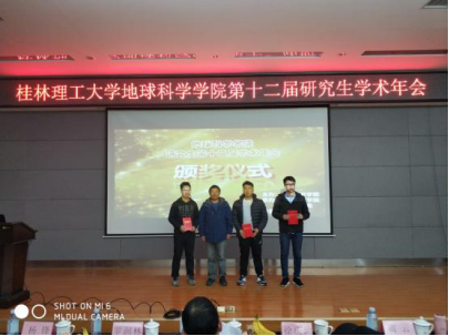 本次年会论文共收集我院研究生论文28篇,终选出了14名研究生做现场答辩交流。评委老师们提问、点评和建议十分中肯,师生交流畅所欲言,会议气氛活跃。最终我院2016级地质学研究生韦天伟同学和刘迪同学分别获得第十二届学术年会一等奖。三元合等3名同学获得二等奖,童静芳等5名同学获得三等奖。