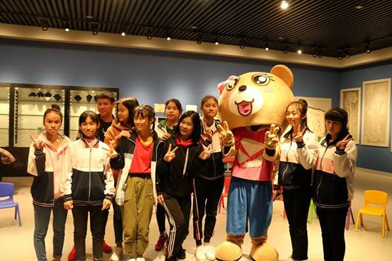 上午十点整,桂林市聋哑学校的孩子们乘坐大巴来到我校地质博物馆,受到了志愿者及工作人员热情的接待。为保证每一个来参观的孩子都可以充分观看和了解博物馆,志愿者与小朋友一对一的结伴,确保安全的基础上,分两批次进入。在参观博物馆的过程中,志愿者用肢体语言和文字对参观的同学进行细致的讲解,并对孩子们提出的问题进行耐心的解答。活动中还请来了易班熊和孩子们玩游戏、为孩子们提供糖果、玩具,与孩子们合照。通过孩子们的表情,我们看到了这些孩子们的快乐以及对博物馆的喜爱。