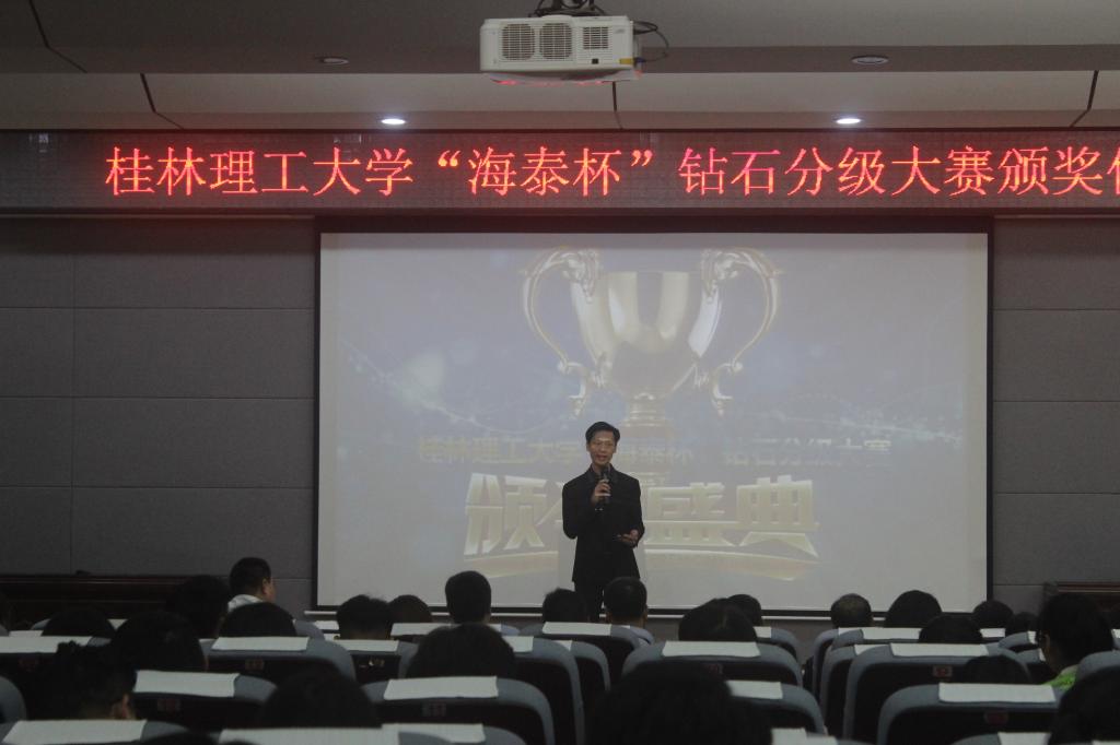 10月16日12:40,由bv伟德国际1946珠宝协会主办的“海泰杯”钻石分级大赛颁奖仪式于逸夫楼01501报告厅 。出席本次活动的嘉宾有珠宝学院常务副院长李东升,珠宝学院副院长沙鑫及珠宝学院的老师,此外深圳市海泰设备仪器有限公司杨涵源总经理也出席了本次颁奖仪式。