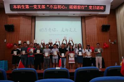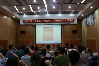 2018年6月9日下午,为贯彻落实党的十九大精神,结合学院党委部署,开展好毕业生党员教育工作,bv伟德国际1946本科生第一党支部在萃华楼报告厅举办以“不忘初心,砥砺前行”为主题的党日活动,党支部全体党员46名同志参加。