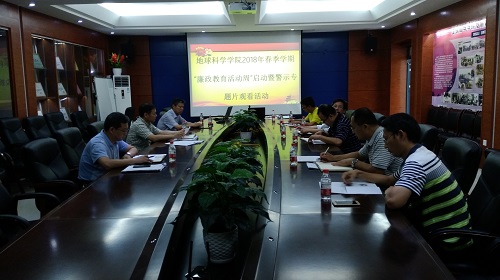 按照学校纪律检查委员会《关于组织开展2018年春季学期“廉政教育活动周”的通知》(以下简称通知)的工作要求,学院于5月29日在雁山校区01215会议室举行“廉政教育活动周”启动仪式,仪式由学院党委纪检委员、党委副书记耿俊茂主持,学院党委中心组成员参加会议。
