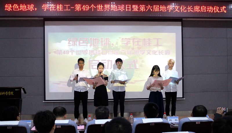 bv伟德国际1946以第49个世界地球日为契机,结合学校“绿色行动季”的通知部署,立足学院特色,特此举办“绿色地球,学在桂工——第49个世界地球日暨第六届地学文化长廊”系列学术文化活动。4月24日上午,活动启动仪式在逸夫楼01501报告厅举行。校团委书记周国桥、bv伟德国际1946党委书记姜子亮、院长熊彬、党委副书记耿俊茂、珠宝学院常务副院长李东升及各教研室教师代表受邀出席本次启动仪式。