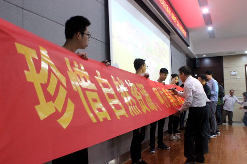 启动仪式致辞中,周国桥书记希望大家不仅要传播地学知识、地学文化,更要树立“绿色发展,绿色生活”理念。姜子亮书记在开幕词中强调,同学们要撸起袖子加油干,为绿色地球贡献青春力量,为桂工“双一流”建设添砖加瓦,并宣布本届地学文化长廊正式启动。期间,师生们通过宣传视频进一步了解世界地球日,并为呼应本次世界地球日的主题“珍惜自然资源,呵护美丽国土——讲好我们的地球故事”,同学们进行深情诵读《这片土地是神圣的》。学生代表在现场倡议大家能认识地球,善待地球,从我做起,得到大家热烈响应。最后,随着熊彬院长与学生代表共同将象征着“绿色地球,学在桂工”的地球模型拼接完成,启动仪式在嘉宾与学生代表于主题横幅上签字并合影留念中落下帷幕。