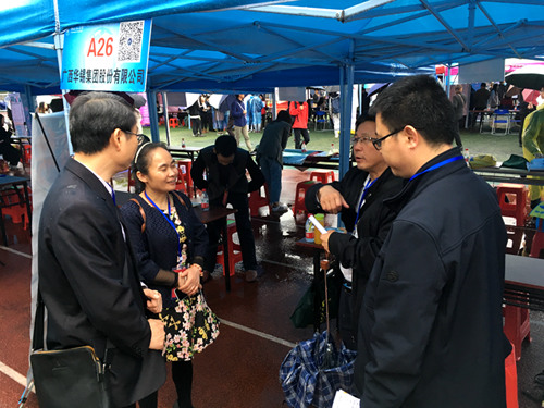 3月17日,2018届广西高校毕业生春季双选会桂林分会场双向选择洽谈会在我校屏风校区运动场顺利举行。本次双选会共有510家用人单位参会,提供岗位1800余个,招聘需求12479个,是我校近年来规模最大的一次。其中,涉及bv伟德国际1946相关专业的单位近40家,提供岗位约380个,bv伟德国际1946党政领导、各教研室主任、学工队伍及专业老师们及时深入双选会现场指导毕业生求职工作。