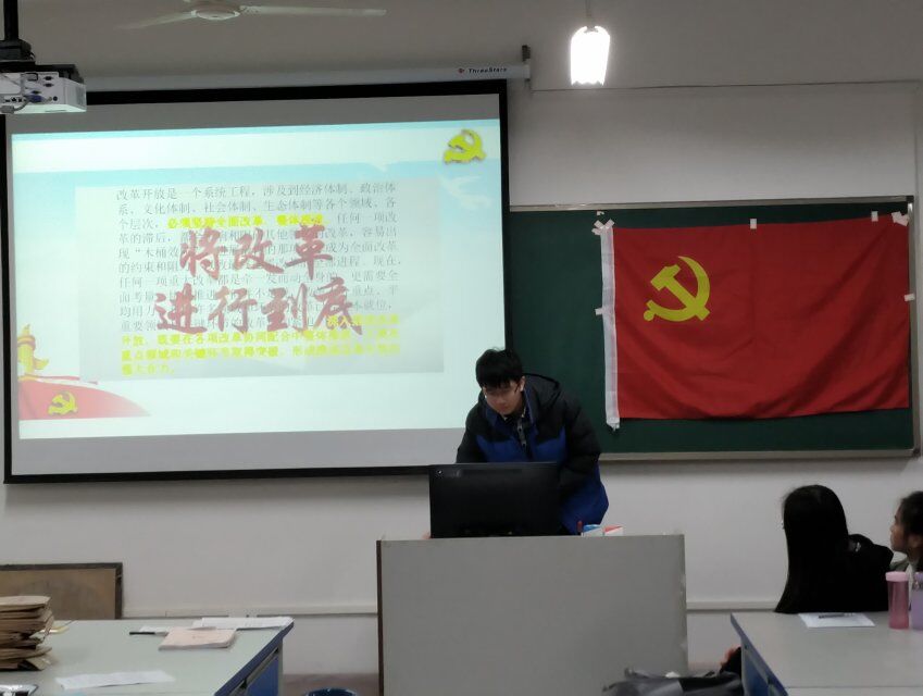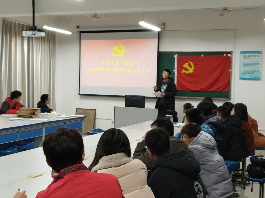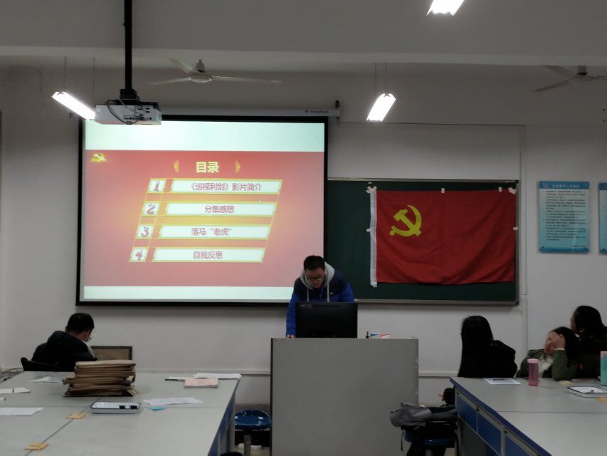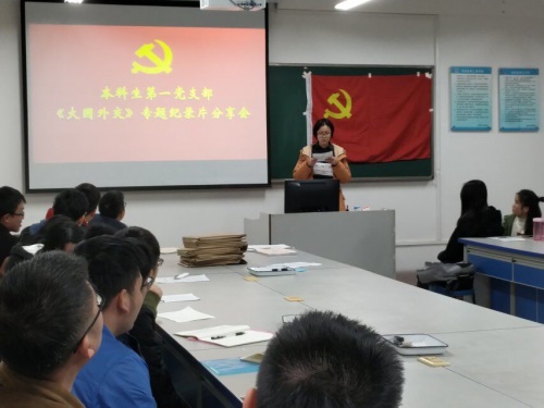 11月1日至11月30日期间,为全面学习十九大精神,了解十八大以来党和国家的发展建设,结合学校党委、学院党委相关会议精神,针对党支部实际情况,本科生第一党支部全体党员在支部书记吴田波同志的组织下分批次、分阶段在宿舍观看学习了《大国外交》、《巡视利剑》、《法治中国》和《将改革进行到底》等四部宣传纪录片。