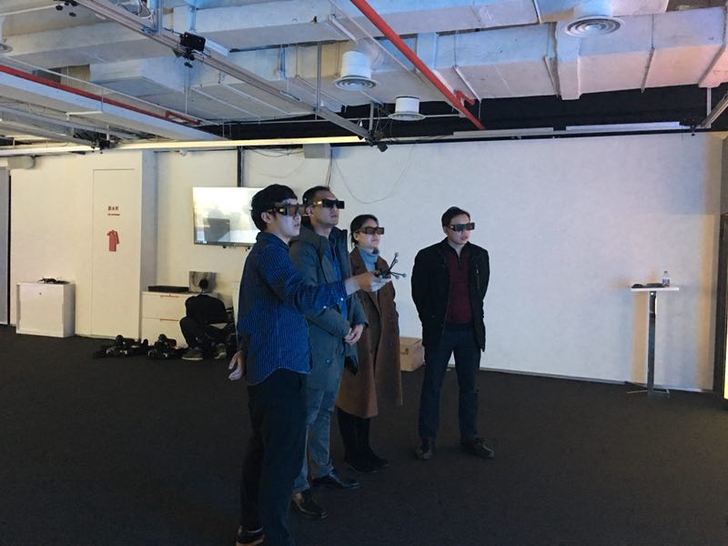 建设小组在上海曼恒数字技术公司体验虚拟仿真交互系统