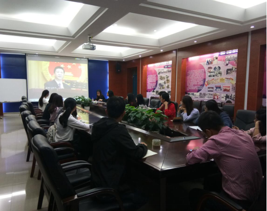 会议开端,吴田波老师带领同志们重温中共十九大在京召开时间、党的十九届一中全会选举习近平、李克强、粟站书、汪洋、王沪宁、赵乐际、韩正为中央政治局常委等内容。接着整个支部一起观看党的十九大宣传片,整个视频向我们展示了在党的领导下我国所取得的成就,人们过上美好生活,逐步走上小康生活。看完视频,吴田波书记与我们共同解读党的十九大八个明确和十四个坚持,新时代、新矛盾、新目标、新思想及会上把习近平新时代中国特色社会主义思想写入党章等内容。