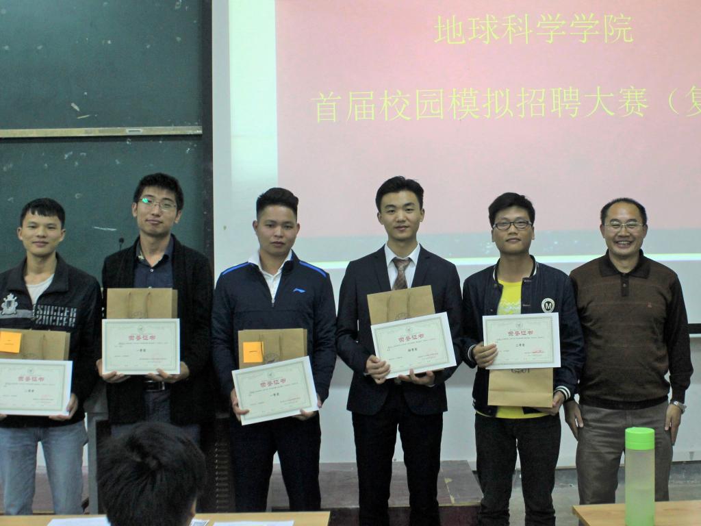 初赛由各班级组织,要求班级全部毕业生都参赛。经初赛选拔出的选手参与到15日晚的复赛中。复赛分为简历制作和现场招聘模拟两个部分,参赛选手递交简历后依次上台模拟招聘。比赛现场气氛热烈,同学们热情高涨,到场观众都积极参与其中。每一位参赛选手都以饱满的激情、激昂的语言、大方得体的举止来展现自己的实力,让面试官认可自己的才能。最后杨凡同学以优异的成绩获得特等奖;庞剑平、翟斌军同学获得一等奖;周丽华、覃先福、冯祖阳同学获得二等奖;刘海龙、黄文倬、景伟伟同学获得三等奖。以上同学将代表学院参加学校最终的决赛。