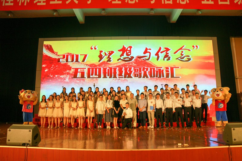 5月26日晚,为纪念“五四”爱国运动,弘扬“五四”精神,学校2017年“理想与信念”五四班级歌咏汇在雁山校区隆重举行。十四支各学院代表队齐聚一堂,共谱五四青春乐章,最终我院以一首《大学生活指南》取得95.36的高分,脱颖而出,拔得头筹。