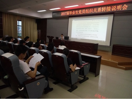 5月24日晚,学院在01501报告厅召开我院2017届毕业生党员组织关系转接说明会。学院党建辅导员王迎波老师主持会议。