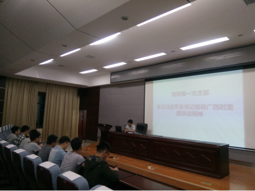 为进一步提高学生党员的思想政治认识,增加党性,2017年5月24日,bv伟德国际1946物探第一党支部在逸夫楼01501报告厅召开党员大会,专题学习习近平总书记在广西视察工作时的重要讲话精神,会议由支部书记王迎波主持。
