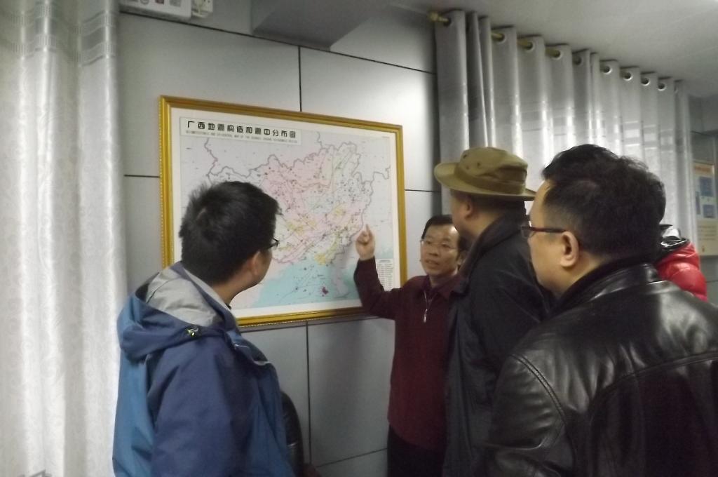 熊彬院长就考察情况做了简单总结,并强调该地区具有地学实训基地建设的所需的所有条件,并表示将尽快展开实训基地建设立项的前期工作。实地考察后,大家参观了广西灵山地震台。