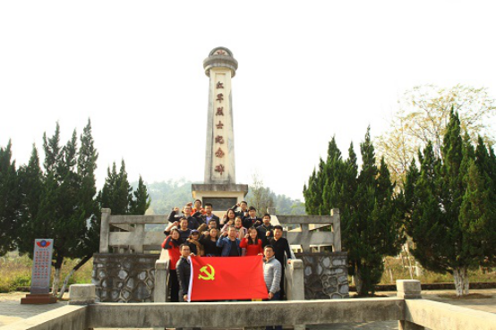 在姜书记的带领下我们瞻仰了新圩阻击战陈列馆中的红军遗物,在酒海井红军烈士纪念碑前,重温了入党誓词。此行让我们了解了那一段红色的记忆。1934年11月27日至30日,为保证中央军委纵队和红军主力顺利通过灌阳、抢渡湘江,突破敌人第四道封锁线,阻击来自灌阳县城方面的敌军,中央军委炮兵营、红五师第14、15团及红六师第18团先后受命在灌阳的新圩至排埠江一带布防,阻击数倍于自己的敌人。红军将士浴血奋战了4天3夜,战斗打得十分惨烈。新圩阻击战为红军主力过湘江赢得了宝贵时间,但有近3000名红军指战员,永远长眠在这片热土上。新圩阻击战是红军长征中抢渡湘江最为关键的战役,是湘江战役中第一大阻击战,是“红军入桂第一仗”,是打得最艰苦、最悲壮的一次战斗。