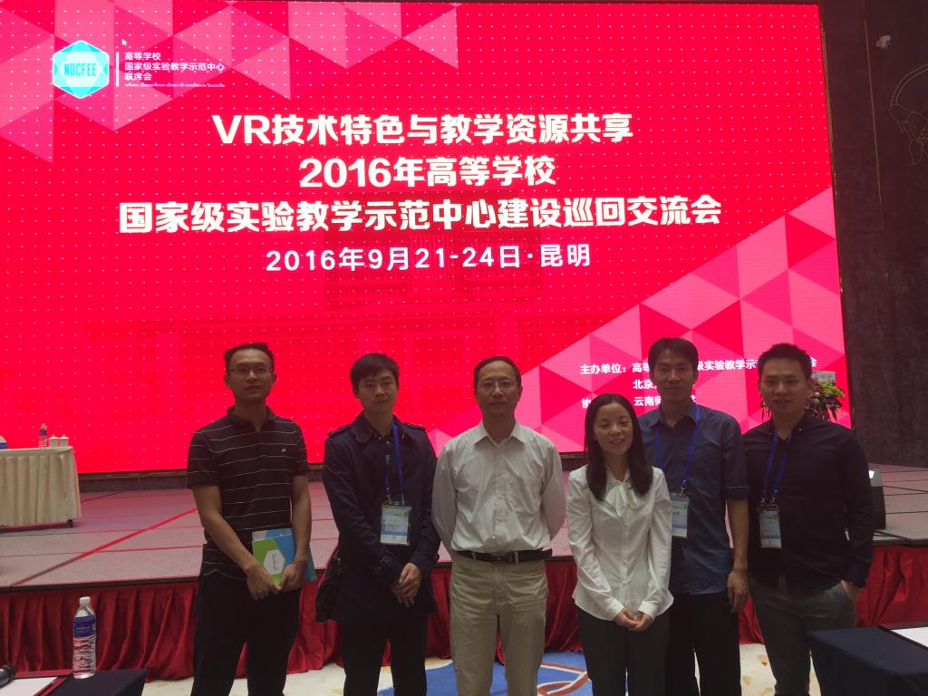 为推进我院虚拟仿真实验教学中心建设,加强实验教学示范中心的内涵建设和可持续发展。2016年9月21-24日,我院组织了吴杰、刘奕志和夏志鹏三名教师参加了在云南昆明举办的“VR技术特色与教学资源共享-2016年高等学校国家级实验教学示范中心建设巡回交流会”(以下简称交流会)。交流会由高等学校国家级实验教学示范中心联席会(以下简称联席会)和北京大学联合主办,云南师范大学协办。来自全国30个省(市、自治区)的212所高校和22个企业的700余位代表参加了本次会议。
