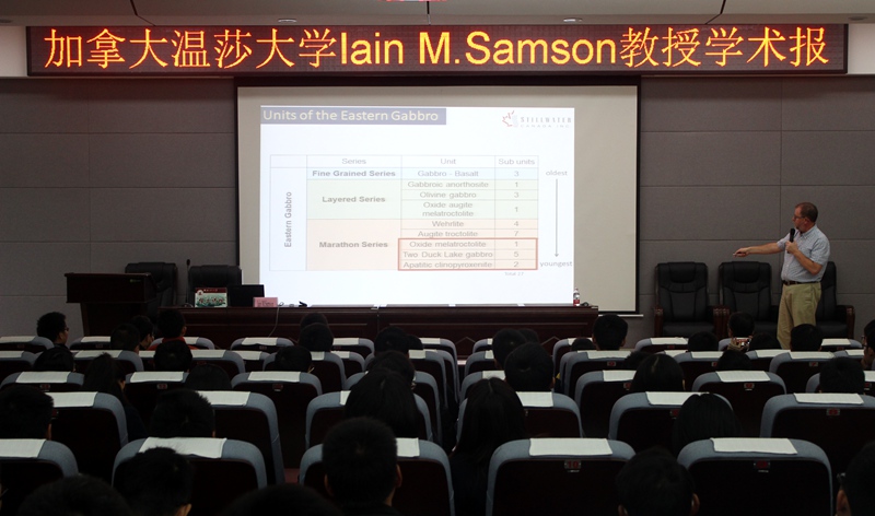 2015年11月12日下午,加拿大温莎大学Iain M. Samson教授应我校bv伟德国际1946邀请做客桂工讲坛,在雁山校区逸夫楼报告厅作了题为“Complex magma and volatile interaction in the formation of the Marathon Cu-Pd deposit, Ontario, Canada”的精彩学术报告。报告会由bv伟德国际1946庞保成教授主持,地学院相关专业师生参加了报告会。